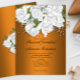 Encantado por la belleza de nuestra invitación a la boda de Naranja Metálico y Rosas Blancas. Esta elegante tarjeta es perfecta para expresar su estilo y encanto únicos. Con un hermoso ramo de novias de rosa blanca sobre un brillante y luminoso fondo naranja, esta impresionante tarjeta sorprenderá a sus huéspedes. Nuestra hábil invitación hará sin duda una impresión duradera. En el reverso de la invitación se encuentra el magnífico ramo de rosa que se encuentra en el centro de la carta.