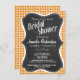 Te encantará este diseño de pizarra de diseño bonito, elegante y vintage con el Naranja Oscuro Gingham; diseño de patrones de cuadros. Le invitamos a nuestra tienda, Bridal Shower Shop, para ver este fresco diseño retro de pizarra en muchos más productos de personalizable, incluyendo botones de novia, sellos modernos de boda y invitaciones a la moda de la tiza Bridal Shower. Gracias!