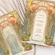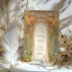 Bienvenido a sus huéspedes con esta encantadora invitación de bodas de inspiración Art Nouveau, que cuenta con un gran arco floral adornado con vibrantes amapolas naranjas y delicadas viñas. Los detalles, de estilo cristalino, de tonos verde suave, crema y pastel, crean un ambiente armonioso y atemporal. Perfecto para los bodas vintage, botánico o de jardín, este diseño refleja la esencia de la elegancia y el romance. La parte trasera muestra una continuación del estilo artístico, que ofrece una perfecta combinación de belleza natural y sofisticación. Personalizable total para incluir sus datos personales.