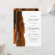 El borde izquierdo de esta elegante y moderna invitación a la boda incluye una acuarela naranja quemada bordeada por un falso purpurina de oro. El texto de personalizable combina secuencias de comandos de color gris carbón y sans serif en un fondo blanco. En el reverso se encuentra un naranja quemado a juego y un diseño de agate dorado.