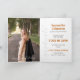 Elegante guión anuncia tu graduado sobre tu foto preferida de la tercera categoría en la parte delantera. Bloquee por su nombre en el frente, y todos los detalles de la ceremonia en el interior junto con otra foto. De vuelta incluye espacio para retransmitir sus planes futuros o incluir un mensaje de agradecimiento. Diseño disponible en colores escolares de rojo, naranja, morado, verde, azul, naranja quemado, marrón y negro. Productos a juego disponibles.