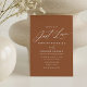 Invite a amigos y familiares a compartir la alegría de su boda con esta invitación moderna, con un guión elegante sobre un fondo naranja quemado.