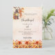 Fondo subió de gradiente dorado. Decorada con una pizarra vintage y flores naranjas. Personalice y agregue sus nombres y los detalles.