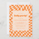 Invitación Naranja retro Resumen Checkerboard Baby Fiesta