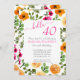Pink y naranja simple acuarela floral 40 cumpleaños invitación con escritura elegante.