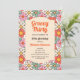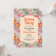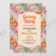 Flor verde, naranja, amarilla y roja retro groovy patrón sin fisuras Invitación de cumpleaños. Este diseño divertido y vibrante es perfecto para todo aquel que desee añadir un toque de estilo retro a su día especial. Con sus colores llamativos y su estampado floral, esta invitación seguramente marcará el tono para una celebración memorable.