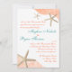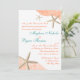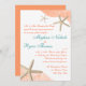 Invitación a una boda Starfish en naranja y aqua o cambiar el color del texto y del fondo para que coincida con el estilo boda temático de su playa.