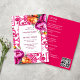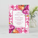 Fuchsia Baldosas de mallica mediterránea magenta fuchsia color de la plantilla de invitación a la boda, estilo italiano Capri, Costa Amalfitana, invitaciones a la boda con temática siciliana con peonías rosadas naranja magenta y vegetación boho