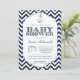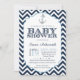 ¡Ahoy! Agradable invitación a la ducha náutica con un gran patrón de chevron y elementos de vela. Ancla y cuerda náutica. ¡¡Hagan una declaración con este diseño!!