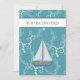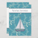 Esta invitación a bañarse en una ducha náutica incluye un velero que se monta sobre un fondo artístico de agua turbulenta. Es perfecto para niños y fiestas neutrales.
