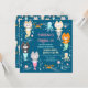 Una invitación de cumpleaños con temática náutica decorada con lindos gatitos de sirena.