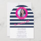 Ahoy there, matey! Celebrate a nautical birthday in style with this fun and vibrant invitation. Featuring a stylish navy blue and white nautical stripe background, a bright pink circle that highlights the birthday girl's photo, and a playful 'Nauti-Girl' theme, this design is perfect for a birthday bash. Personalize it with your party details and make a splash with this memorable invitation that captures the essence of a seafaring adventure. This design is perfect for a 30th birthday, but can be customized for any age. Set sail for a fun-filled celebration!