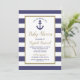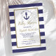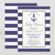 Invitación Nautical Anchor Navy Blue Striped Boy Baby Shower