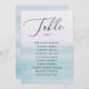Guide your guests with style using this blue watercolor table seating chart card. Featuring elegant calligraphy and a soft coastal inspired background, this design is ideal for ocean, nautical, seaside, or beach weddings. Each card displays the guest list for one table, making it easy for friends and family to find their seats while adding a refined decorative element to your reception. The blue ombre background creates a serene nautical look, perfect for pairing with navy and white, coastal chic, or elegant ocean inspired wedding decor. An ideal detail for weddings, destination ceremonies, or large receptions. These individual table seating chart cards keep your event organized while enhancing the overall aesthetic. Available as both a printed card and a digital download.