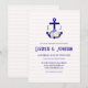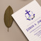 Nautical anchor and monogram framed by a lightened version of patriotic florals: white rose, blush pink peony and light blue. Preppy pink and white stripes for a summer, beach, or destination wedding event.