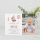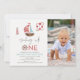 Navegación Náutica Moderna en Invitación a un Primer Cumpleaños Esta foto navegando en una invitación de primer cumpleaños incluye un barco de vela, faro, casco y salvavidas, así como la foto de tu pequeño. Ideal para una invitación de cumpleaños con temática náutica.