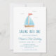 Celebra el gran hito de tu pequeña con una invitación de primer cumpleaños con temática náutica que incluye un lindo velero. Decoración fiesta en juego en nuestra tienda