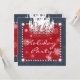 Invitación de boda Christmas Blue jean denim y diamantes con hermoso candelabro y patrón de flores y copos de nieve.