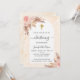 Marco de arco y mármol dorado subió como fondo. Decorada con rosa de oro y flores rosadas, rosas y pampas. Personalice y agregue un nombre y detalles.