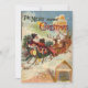Ilustración vintage de la era victoriana diseño de vacaciones de Navidad con arte de portada de La Noche Antes de Navidad con San Nicolás en un tejado con su trineo y renos en Nochebuena.