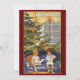 Imagen de la festividad de los Navidades victorianos de ilustracion vintage con hermanos felices sentados en un sofá. Un hermano y una hermana en un sofá tienen un árbol de Navidad decorado y una ventana detrás de ellos. El chica está leyendo un libro y el niño está comiendo un dulce. El texto dice "Una Feliz Navidad".
