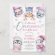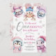 Invitación Navidades 1er cumpleaños animales de invierno rosa