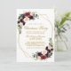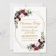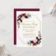 Elegante acuarela Borgoña Marsala Navidades Florales Invitación. Incluye hermosos rosas y vegetación botánica. Guión dorado. Marco geométrico.