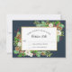 Fondo azul marino rico y oscuro con marco purpurina dorado. Tarjeta de respuesta RSVP | Mezcla y coincide con la invitación Floral Colección de Bodas de Navidades de Invierno, Holiday & Navidades Fiestas Suites. Color de agua pintado a mano floral con hojas de bosque y follaje. Copyright, Audrey Jeanne Roberts.