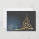 La tarjeta de Navidades presenta un elegante árbol de Navidad dorado hecho de brillantes estrellas en un fondo azul oscuro. Las letras "Feliz Navidad" en letras doradas y curvadas redondeadas estilizan el diseño festivo. 🎄 ✨