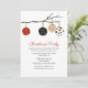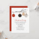 Invitación a la fiesta de los navidades, con hermosas acuarelas gráficas de un colorido adorno de bola colgando de una rama. El texto personalizado se puede personalizar para leer lo que se desea.