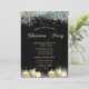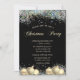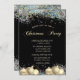 Una elegante invitación de fiesta de vacaciones con bolas de Navidad, confetti sobre fondo negro. Estas hermosas invitaciones a Navidades son perfectas para Navidades que invitan a cenar, invitaciones de intercambio de regalos de vacaciones, recaudaciones de fondos para Navidades, invitaciones para fiestas de vacaciones y otros eventos que se llevan a cabo durante el mes de diciembre. Utilice los campos de plantilla para agregar su propia información de eventos.