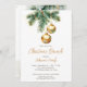 Navidades brunch party Invitación a la carta plantilla descarga digital instantánea pinos acuarela y oro baubles Navidades simples tarjetas de invitación de fiesta