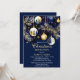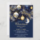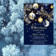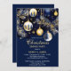 Navidades cena fiesta oro clásico y azul marino baubles y copos de nieve hireras nevadas acuáticas plantilla de acuarela invitación descarga instantánea