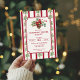 Invitación Navidades cena fiesta rayas retro rojas arco de pi