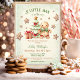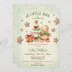 ¡Un hombrecito está en camino! Navidades niño invitación a la ducha de bebé con un adorable hombre de pan de jengibre, árbol de Navidad, regalo y estrellas de pan de jengibre en verde clásico, rojo y beige. Personaliza fácilmente todo el texto - Kate Eden Art