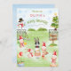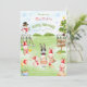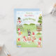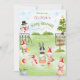 Una invitación al cumpleaños de un niño con temas de Navidades y conejo de invierno. La invitación para los niños incluye bonitos conejos que disfrutan de una fiesta de cumpleaños en un nevado jardín de invierno, rodeado de torta de zanahoria, un muñeco de nieve y un árbol de Navidad.