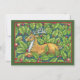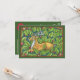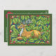 Ilustracion de época Diseño navideño de Feliz Navidad con un adorable reno personalizado. La garganta tiene grandes cuerdas que descansan en un trozo de hojas huecas y bayas rojas en un bosque.