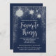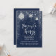 Invite a sus amigos y familiares a un fiesta anual de intercambio de regalos de "Cosas favoritas" con esta encantadora invitación azul marino, con estrellas de estilo brillante y baubles. Plantilla totalmente editable con los detalles del evento, nombres de alojamiento e información rsvp.