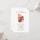 Diseño de la fiesta de cumpleaños de los Navidades, de vestido rojo, con ilustracion antiguo de una linda niñita, con el pelo rubio, vestido con ropa roja y blanca, con una flor de poinsettia roja y con un conejo mullido (o conejito) junto a sus zapatos blancos. El bonito ilustracion se imprime sobre un fondo blanco, con una plantilla de texto en personalizado rojo y negro. Personalice fácilmente con los detalles de su fiesta.