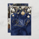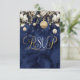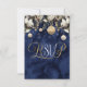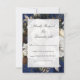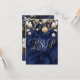 ¡Asegúrate de que tu lista de invitados se rellene rápidamente con estas tarjetas RSVP de Navidades! El frente está impreso con elegantes letras doradas y blancas en una rica textura de acuarela azul enmarcada en la parte superior por flores y adornos navideños. En la parte posterior se muestra la información de respuesta que se puede personalizar. Con estas tarjetas, no te perderás a un solo invitado.