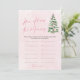 ¡El bebé árbol de navidad de Bows rosados Cómo de vieja era mi partida es una deliciosa y festiva adición a tu ducha de bebé de vacaciones! Con un diseño encantador con arcos rosas, árboles de Navidad y un fondo rosa nevado, este juego invita a los invitados a adivinar la edad de la futura madre en adorables fotos de la infancia. Perfecto para la celebración temática del invierno de una niña, este juego agrega nostalgia, risas y alegría navideña, creando recuerdos especiales para que todos disfruten. 🎀 🎄 ✨