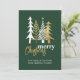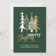Elegante empresa Navidad una tarjeta plana, hecha en verde, con dibujos de dibujos de dibujos de doodle de árboles blancos y dorados de Navidad, en la parte superior. Personalice el texto para leer lo que desee. Excelente tarjeta de felicitación corporativa de vacaciones que los empleados apreciarán.