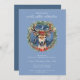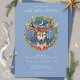 Invitación a Navidades del feriado de invierno del feriado de ciervo rojo Berries con polvorientos antecedentes azules y espalda azul oscuro. ¡Feliz solsticio de invierno! Celebra la noche más larga y mágica del año con este hermoso diseño de Navidades Holiday Winter Solstice. Este bonito diseño acuático moderno incluye una corona verde, un rocío de ciervos con cuernos, estrellas doradas y luna creciente azul, ramas, velas rojas con llama brillante y puntos metafísicos de conglomerado de cristal de oro esotérico. Texto listo para el personalizar con su información.