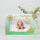 Clásica Tarjeta de vacaciones personalizada para Navidades de fotos de Personalizados de oro y verde sabio.
