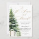 Este Navidad, una invitación a la boda de invierno, encarna la elegancia de la moda con su encantador diseño acuático, con un majestuoso pino con acentos blancos de nieve, pintado en acuarela moderna, con un par de regalos a la vista para sugerir Navidades, así como una caligrafía moderna para el título "Esta temporada a casarse" con un falso efecto dorado (¡este es un efecto digital, no un Relieve metalizado real!). Perfecto para parejas que aman el arte y los diseños únicos, elegantes rústicos rústicos, bohemios y románticos, esta invitación es ideal para invitaciones nupciales de Navidades. Explore nuestra colección de invitaciones temáticas para Navidades, ofreciendo una variedad de Navidades invitando ideas de invitación para inspirar su celebración. Desde invitaciones a bodas temáticas de Navidades hasta elegantes invitaciones a bodas de Navidades, nuestros diseños son perfectos para invitaciones a bodas en diciembre. Haga que su día especial sea inolvidable con nuestras ofertas de boda para bodas de invierno y Navidades, diseñadas para llevar la magia de la temporada a su elegante boda Navidad.