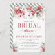 Elegante acuarela color rojo verde hojas de bayas de invierno y ramas invitación a la ducha de novia.