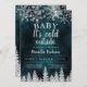 ¡Bebé, hace frío afuera! Celebra que tu bebé venga con este purpurina plateado espuma nieve y copos de nieve, con brillantes pinos plateados en un elegante fondo de color verde agua de invierno.
