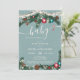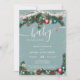 ¡Cariño, hace frío afuera! Celebra la próxima llegada de tu pequeño copo de nieve con un toque de magia de invierno. Nuestra moderna y moda ducha para bebés captura la elegancia de la temporada, con luces festivas para Navidades, exuberantes ramas de pino verde y brillantes copos de nieve. Un ilustracion encantador de un brillante adorno de bola de Navidades, junto a ramas de pino acuarelas, mistletoe y conos de pino, añade un toque caprichoso. Todo ello sobre un fondo azul hielo de invierno editable, adornado con delicadas luces de cuerda.