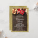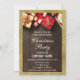 Navidades de la fiesta anual de de la compañía navideña invitan al partido con un brillante purpurina de oro que brilla la frontera, regalos rojos con arcos y elegantes escritos blancos sobre madera marrón oscura rústica. ¡Son unas vacaciones perfectas, Navidades o invitaciones invernales!
