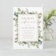 Esta invitación a la ducha de novia está compuesta por eucaliptos de color de agua pintados, hojas verdes, bayas rojas, ramas de pino y un marco rectangular de oro falso con caligrafía elegante. Para una personalización más avanzada de este diseño, haga clic en el enlace "Personalizar más adelante". También están disponibles los elementos coincidentes.